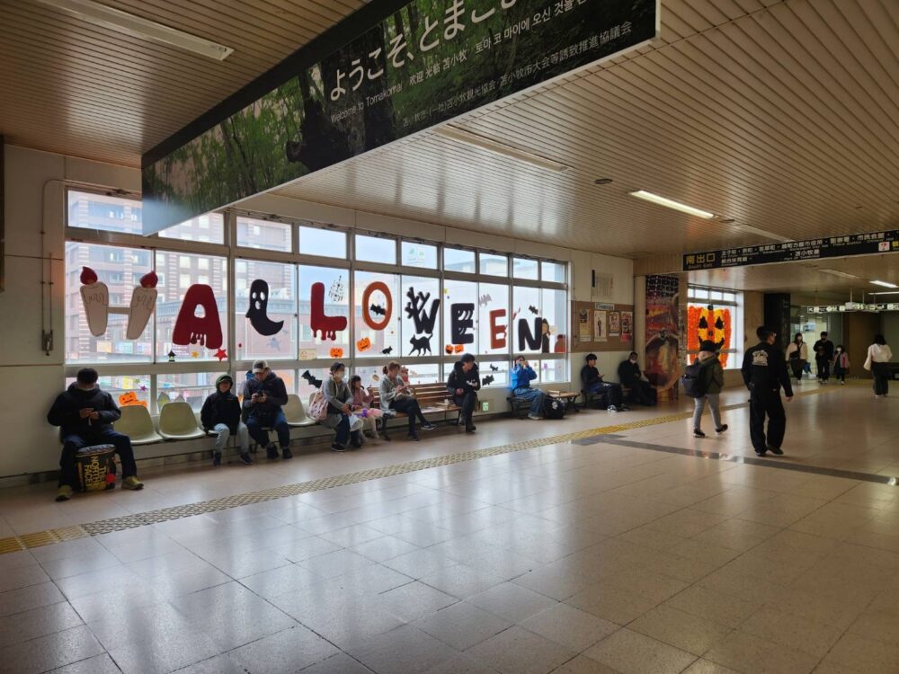 上の写真は昨年の様子です。駅コンコースがハロウィンの雰囲気に包まれています。