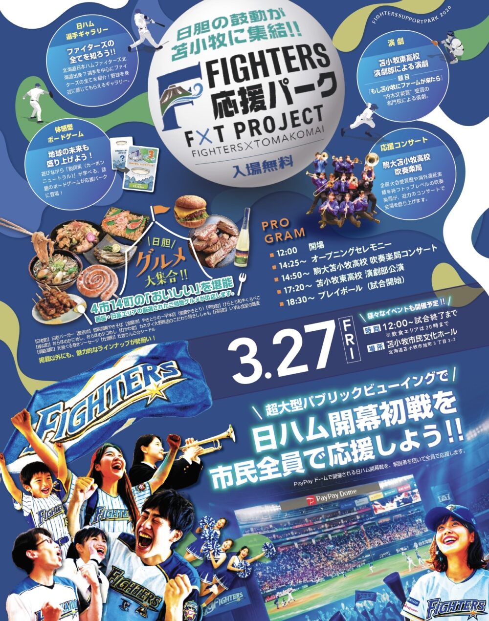プロ野球レギュラーシーズンの開幕戦、そして胆振日高のご当地グルメが一堂に集まることも見逃せないこのイベント。当日はこのイベントでART CUBESも貸切です!内容をもう一度チェックしてみましょう♪