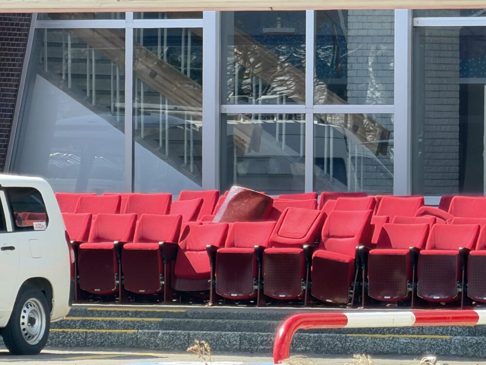見覚えのある赤い椅子がホールから取り外され、外に運び出されていました。