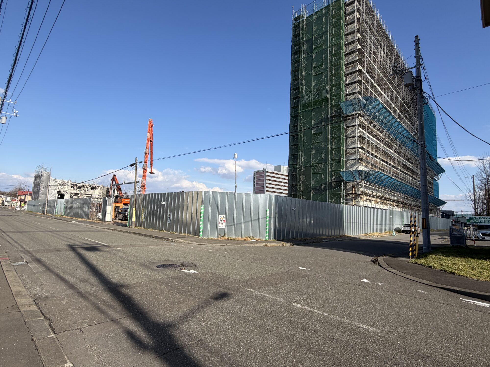 こちらは汐見通側(「セブン-イレブン 苫小牧末広店」や「キッチン ウフロワ」側)から見た2025年11月現在の解体の様子。