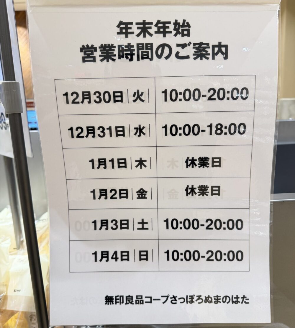 休業日は1月1日(木)と1月2日(金)となっています。大晦日も18時までの営業なのでご注意くださいね。