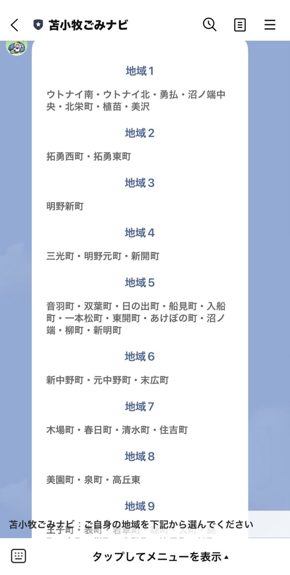 利用料は無料(通信料は利用者負担)。LINEアプリのホーム画面にある検索バーで「苫小牧ごみナビ」と入力するか、以下の公式リンクから簡単に友だち追加が可能です。