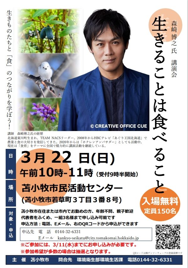 北海道の食と農を語るならこの方、TEAM NACSリーダーの森崎博之さんが苫小牧にやってきます!