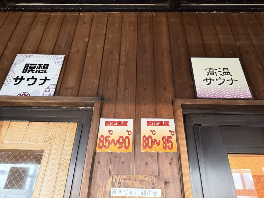 従来からある高音サウナとの設定温度の比較はこちら。瞑想サウナのほうが若干高めとなっていますね。