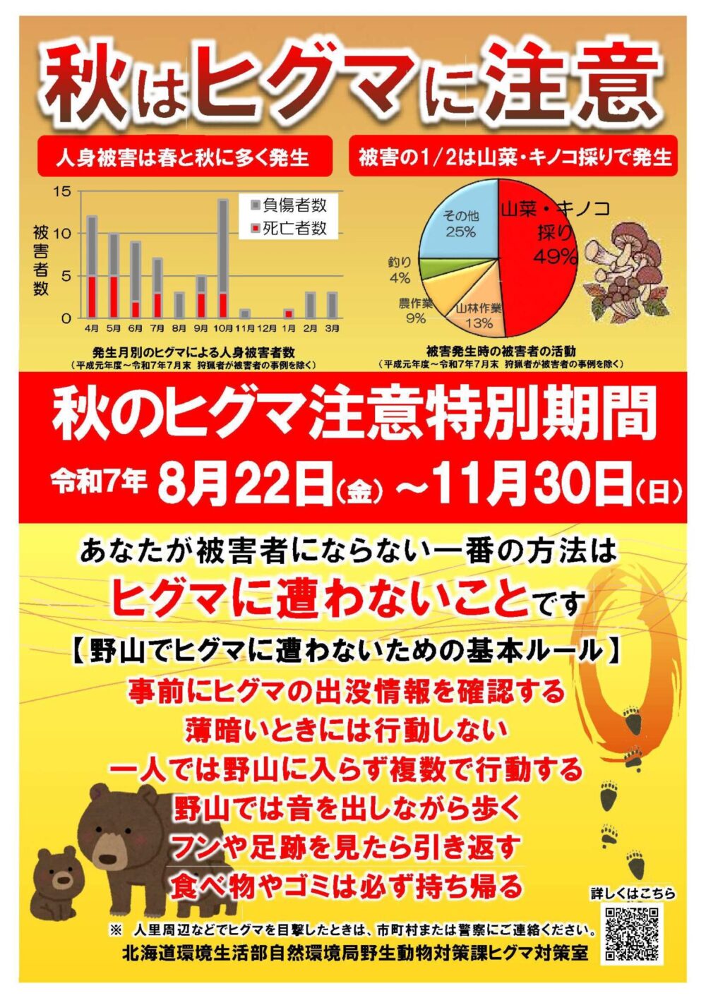 現在、秋のヒグマ注意特別期間でもあります。