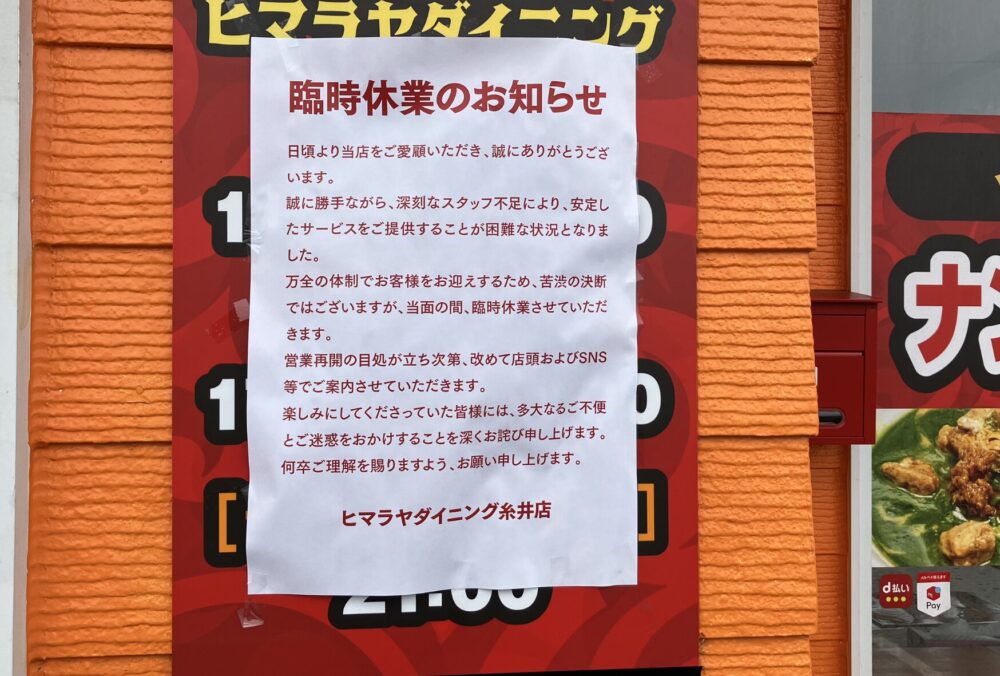 しかし、現在、店頭には「臨時休業のお知らせ」と書かれた張り紙が貼られていました。