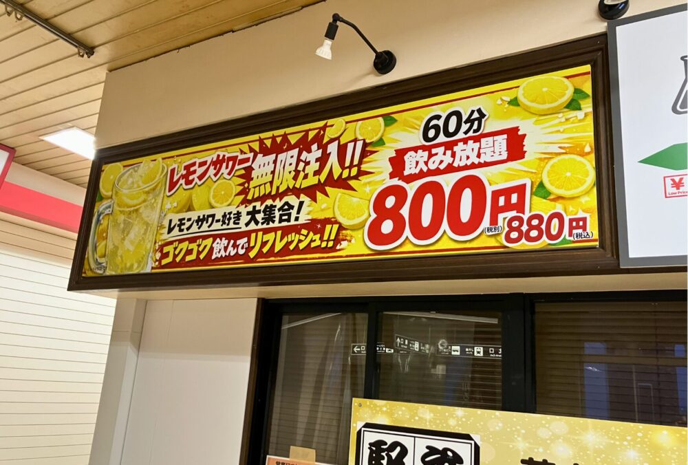 「立ち飲み」「レモンサワー飲み放題」「オードブル付き」…など、気になる文言が並んでいます。