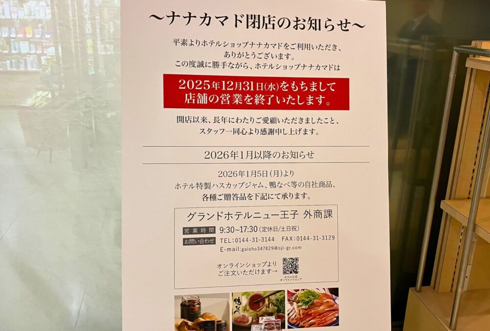そして「ホテルショップ ナナカマド」は2025年12月31日(水)をもって閉店。取り扱っていたお土産や贈答品は、ホテル内ギフトカウンターやネットショップで引き続き購入可能とのこと。