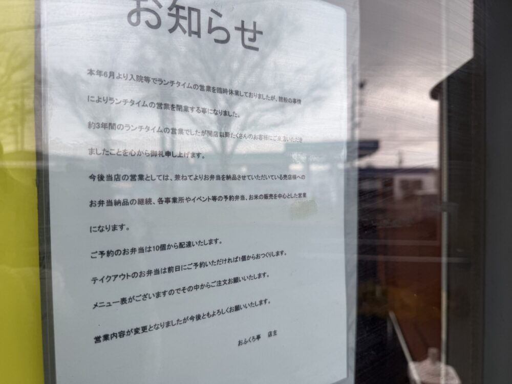 お知らせによると、2025年6月より店主の方がご入院され臨時休業していたようですが、諸般の事情によりランチの営業を終了されたようです。