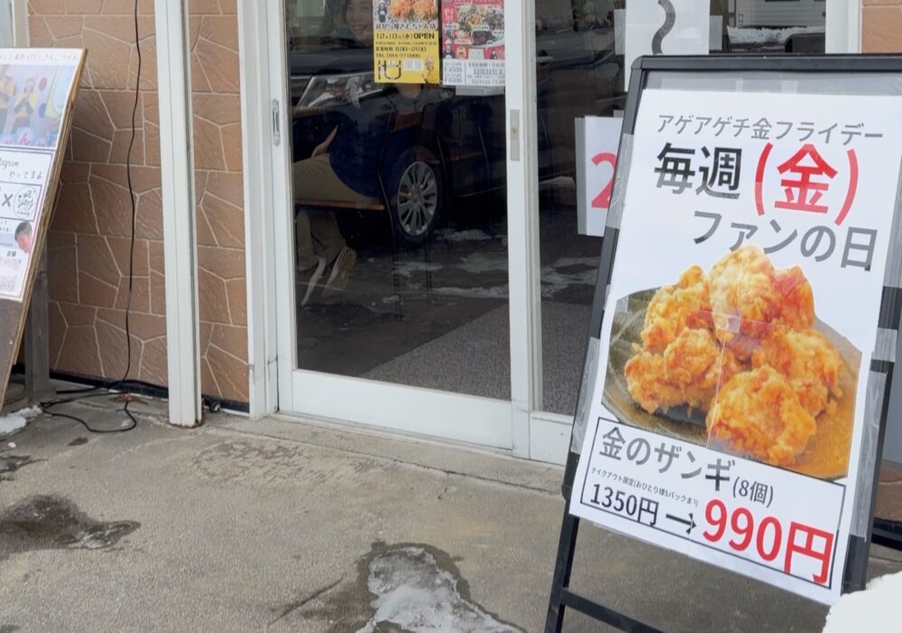 お得な内容はこちら。「アゲアゲチ金フライデー!」ということで、金のザンギの8個入りが通常1,350円のことろ990円で購入できるそうです!