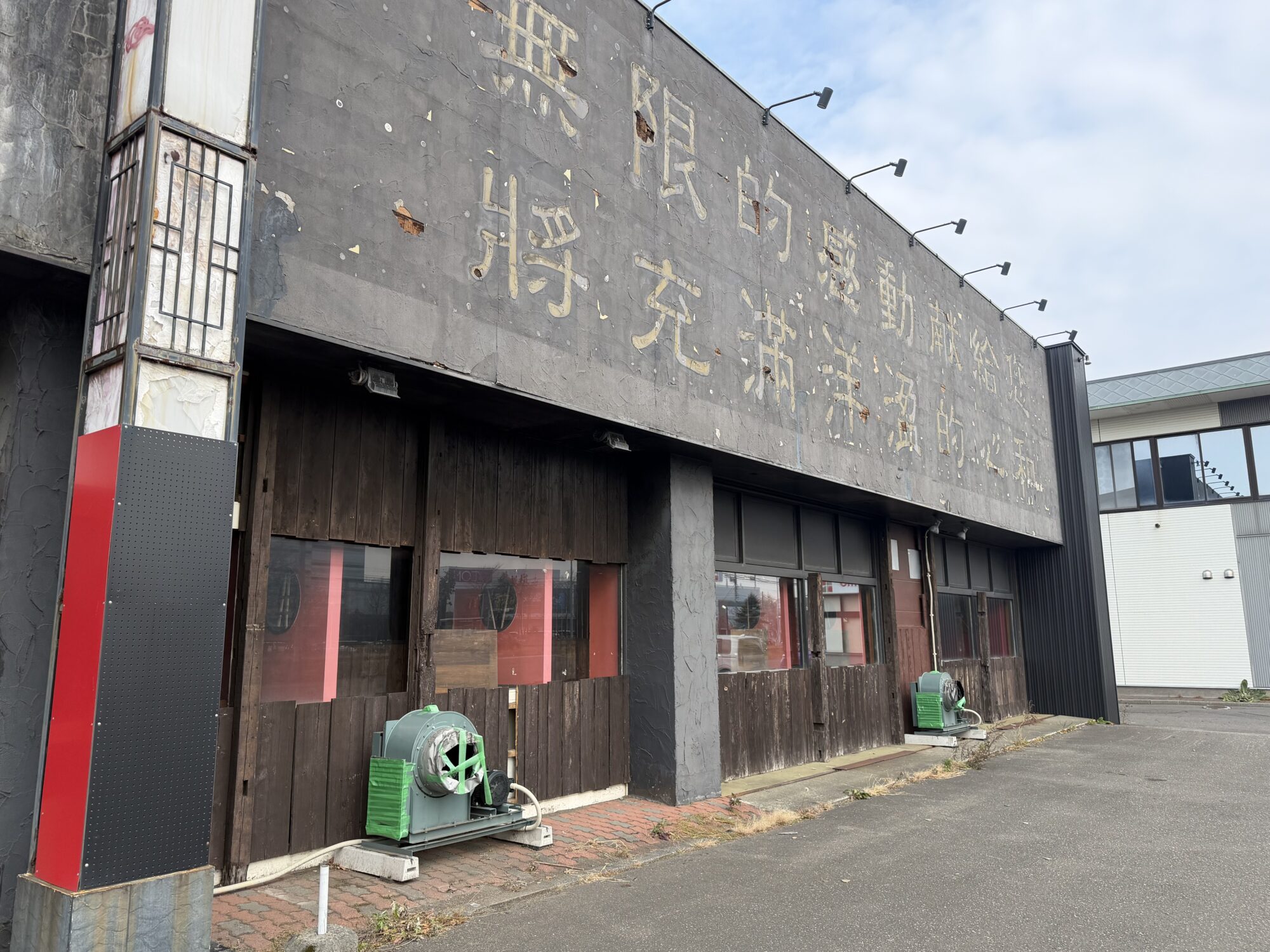 現在看板が外され、中華料理店「暖中 苫小牧店」だった面影が蘇ったような外観となっています。