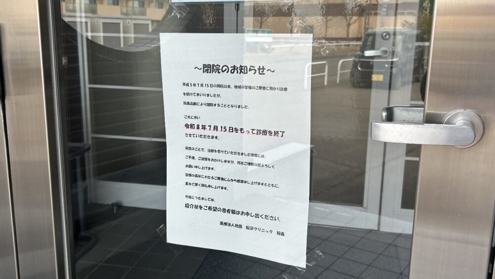 明野新町5丁目にある「松沢クリニック」が2026年7月15日(水)に閉院することがわかりました。