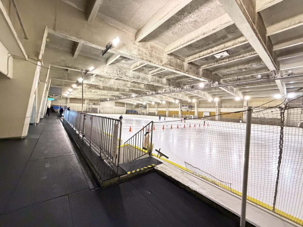 オープン当初は夏季にプール、冬季にリンクの運営。今でも階段を降りてリンクに入っていくのがプールと併用していた名残だそうです。
