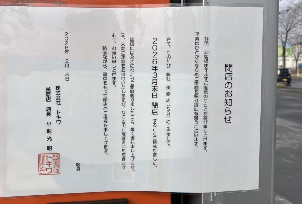 「2026年3月末日 閉店することに相成りました。」と確かに書かれてあります。どうやら2026年2月頃には閉店することがお知らせされていたようですね。