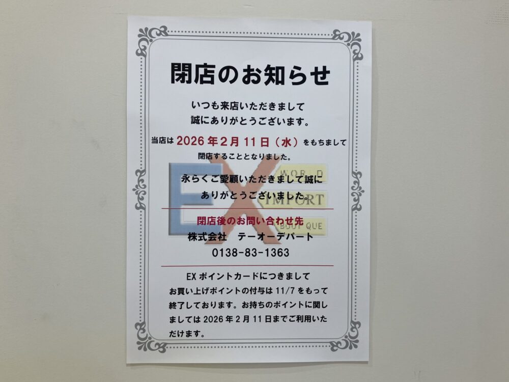 読者の方からイオンモール苫小牧のテナントの閉店情報をいただきました。