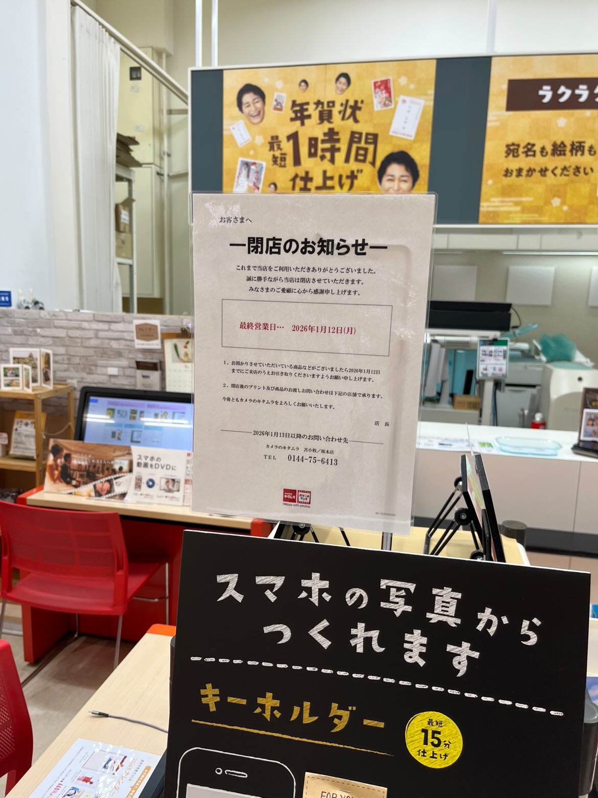 いただいた画像によると、「カメラのキタムラ 苫小牧・イオンモール苫小牧店」は2026年1月12日(月)をもって閉店となるそうです。