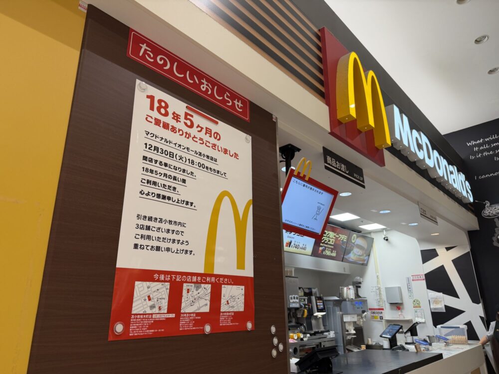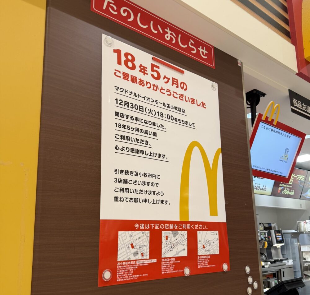 イオンモール苫小牧のフードコートに行った際に、マクドナルドをよく利用していた方も多いのではないでしょうか。