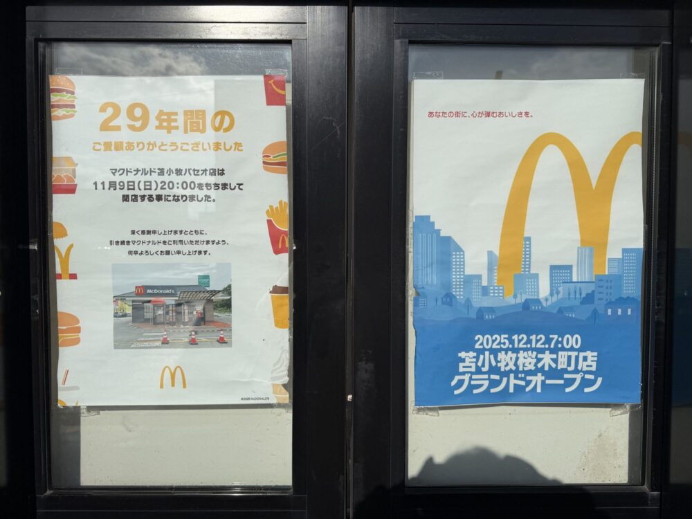 閉店後の市内のマクドナルドは「苫小牧桜木町店」「36号苫小牧店」「苫小牧清水町店」の3店舗となりますね。