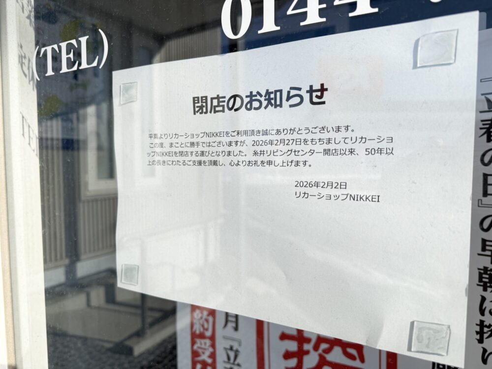 「糸井リビングセンター」の頃から、そして「スーパーバルス日新店」、「フードD365Vian(ビアン)店」と続いてきた「リカーショップNIKKEI」の50年以上の歴史が幕を閉じることとなります。