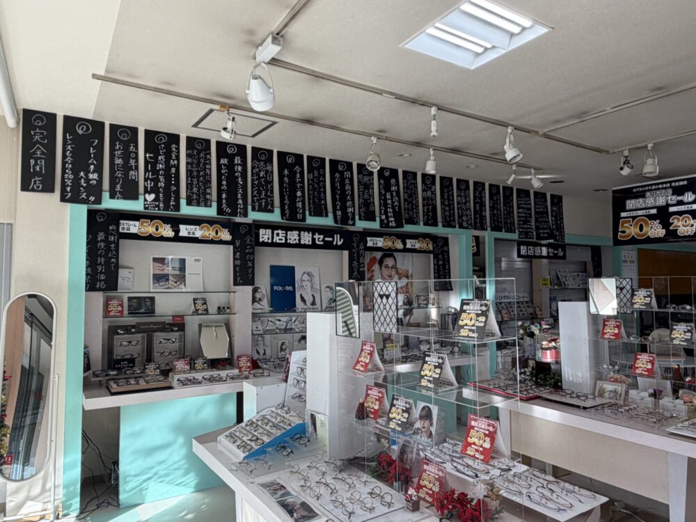 先日、2025年中に閉店する予定であることをお知らせしていた表町、シンボルストリート沿いに古くからある眼鏡店、「オバラメガネ 本店」。