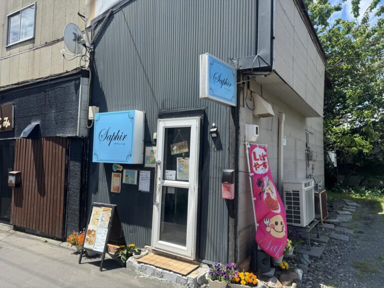 錦町1丁目、スマイルホテルの裏通りにあり、水色の看板が目印なサンドイッチとカレーの店「saphir(サフィール)」。