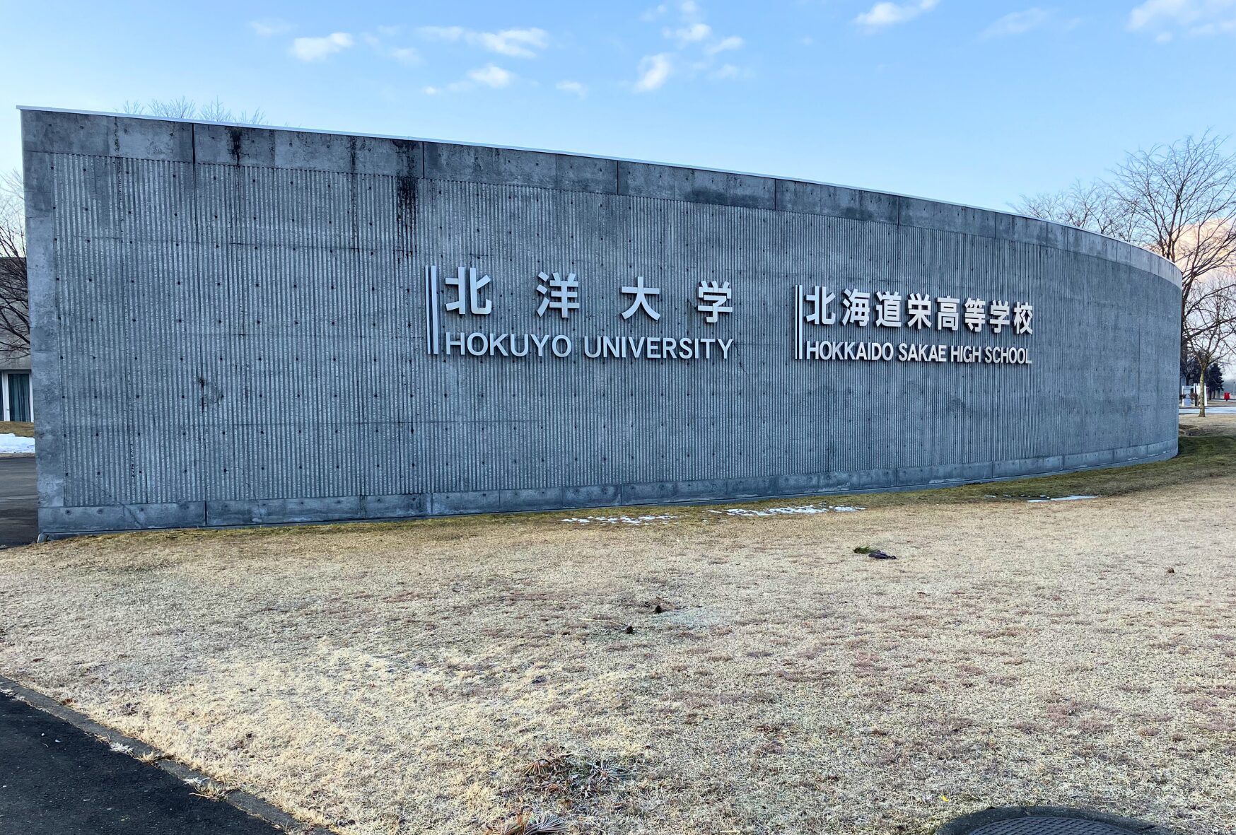 現地に行ってみると、「北洋大学」の隣に「北海道栄」の校名が刻まれた新しい看板が設置されていました。
