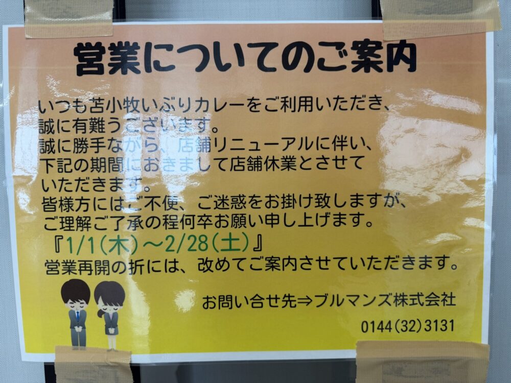 2025年8月から休業が続いている、JR苫小牧駅にある「苫小牧いぶりカレー」。