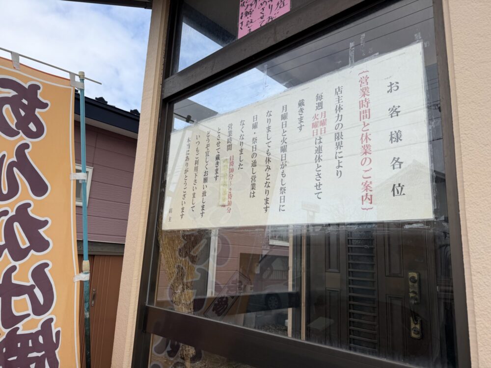 2026年3月5日(木)現在も休業は継続中で、貼り紙は2月28日(土)までの休業を案内したまま更新はされていませんでした。