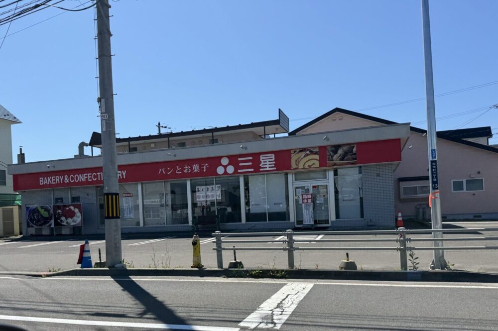 こちらも2025年6月から休業が続いている矢代町2丁目にあるパンとお菓子のお店、「三星 三条通り店」。