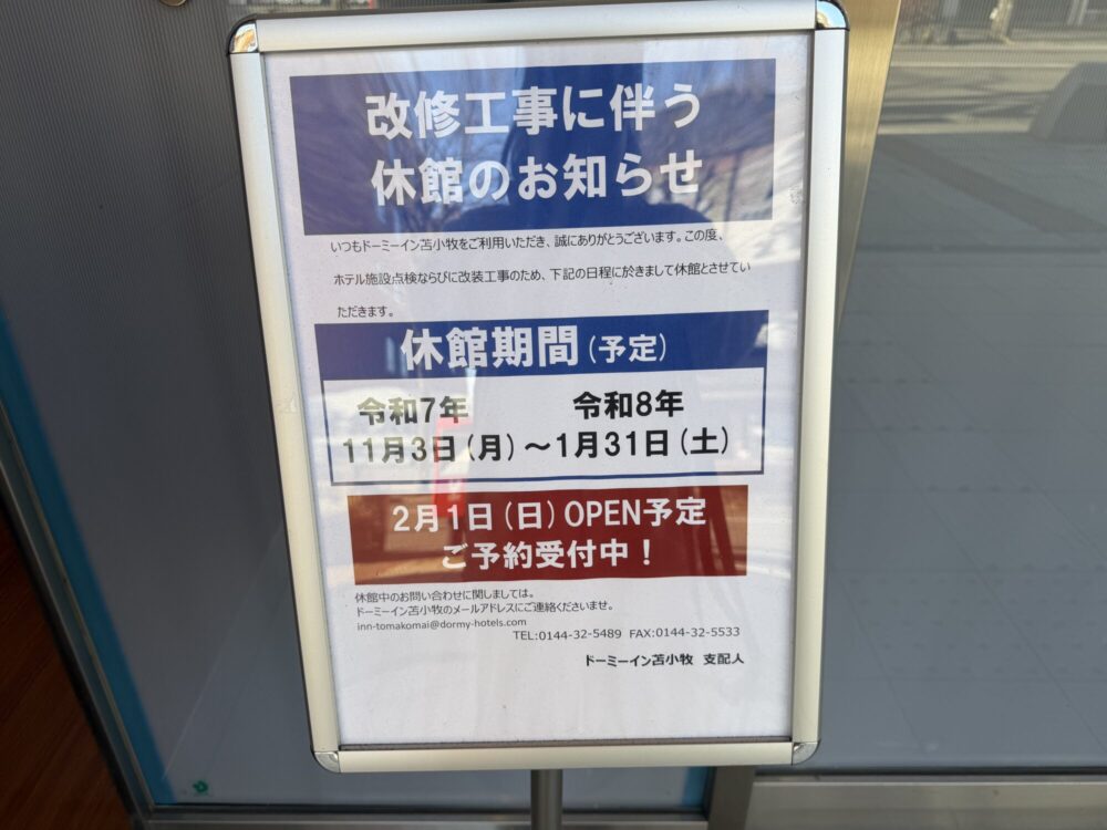 そんなドーミーイン苫小牧ですが、現在休業しているようです。
