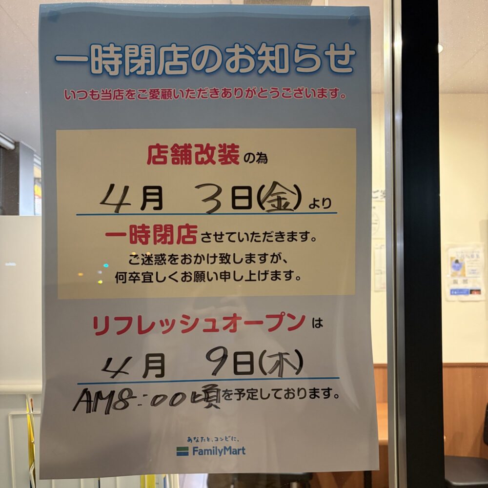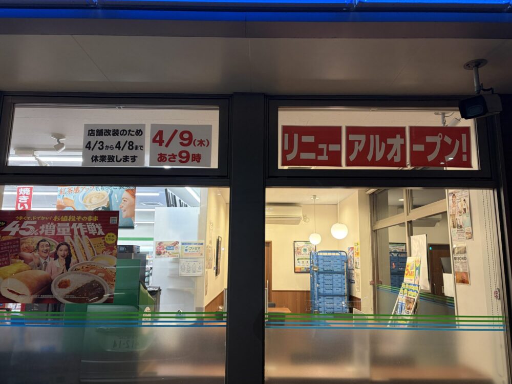 今回はファミリーマートのリニューアルオープンの情報を得たので、現地の様子を確認してきました。