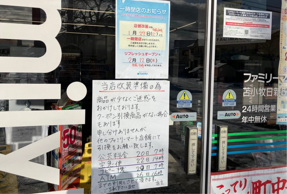 日新町5丁目、糸井環状線沿いにある「ファミリーマート苫小牧日新5丁目店」が改装のため、一時閉店するそうです。