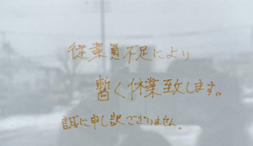 まずは錦岡にある「錦岡店」へ。入り口の貼り紙まで近づいてみると…