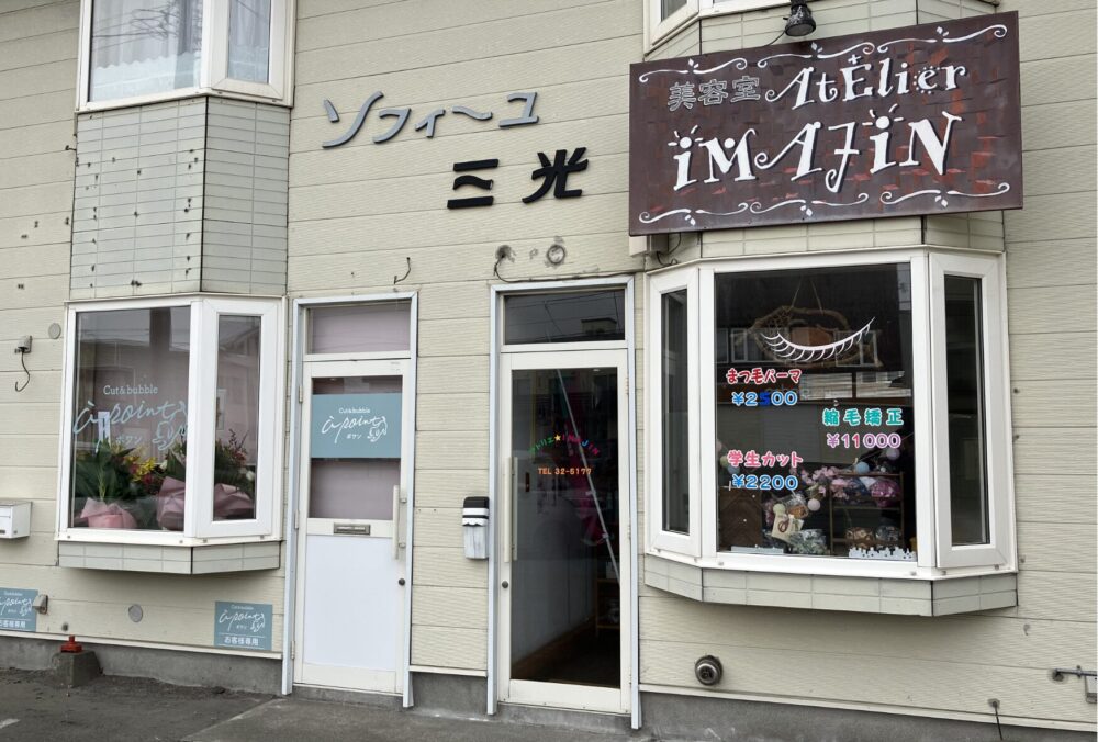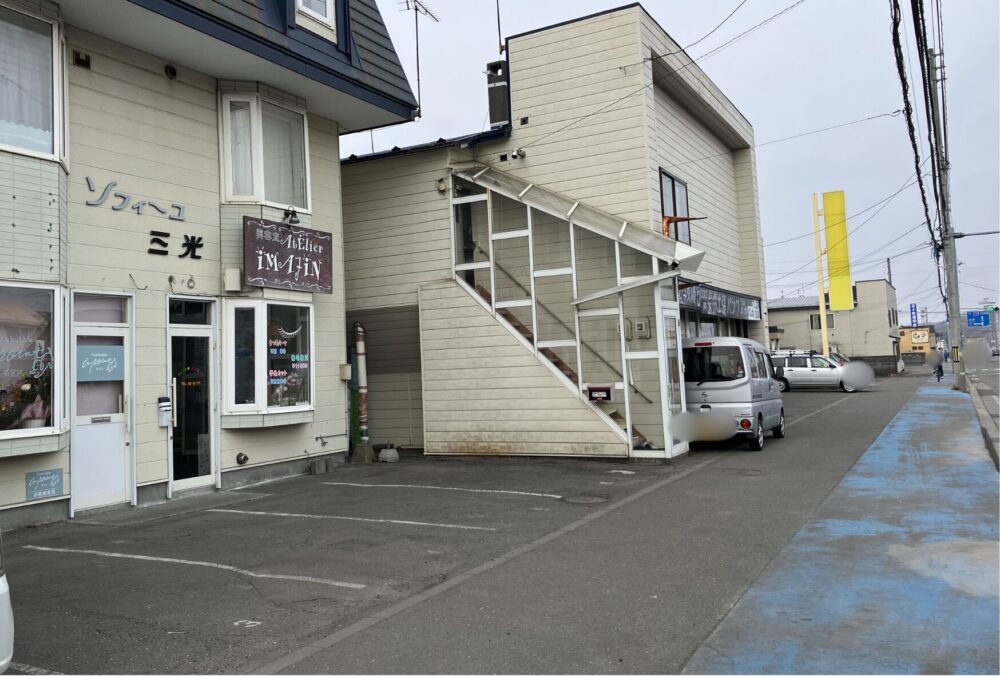住所は「苫小牧市三光町5-25-16 ソフィーユ三光1F」。美容室「アトリエ今人」の隣です。