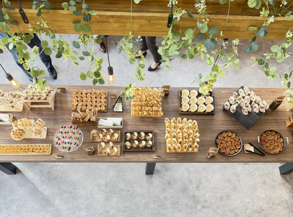 この日はオープン前のレセプションが行われる日だったようで、1階のテーブルには美味しそうな料理がズラリと並べられていました。このお料理を見るだけでもワクワクしませんか?