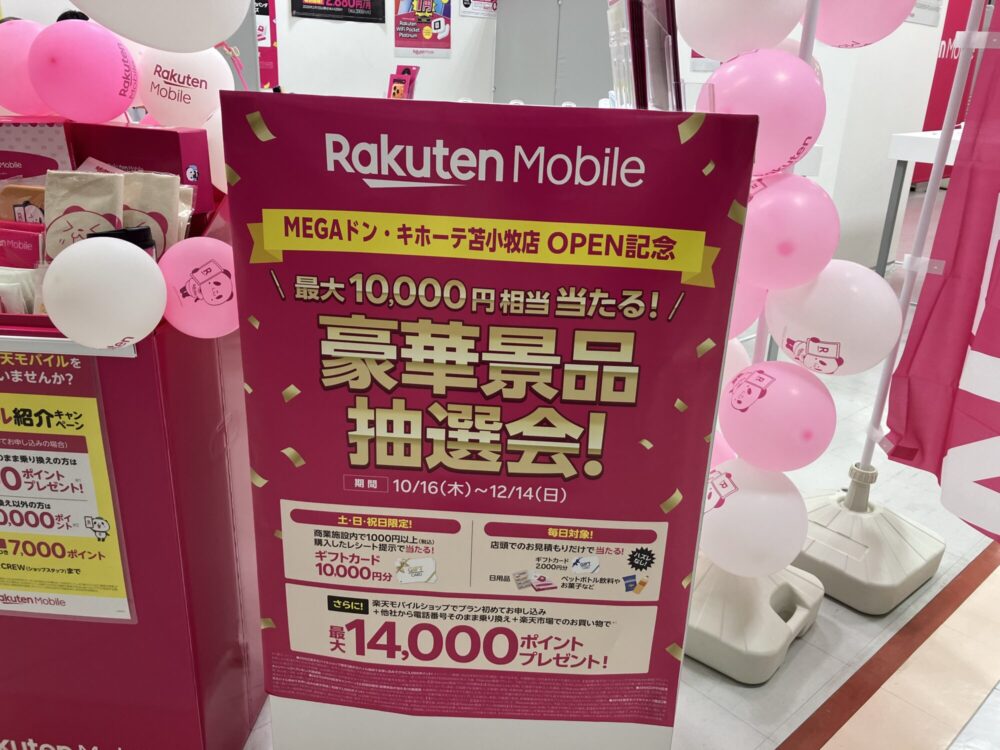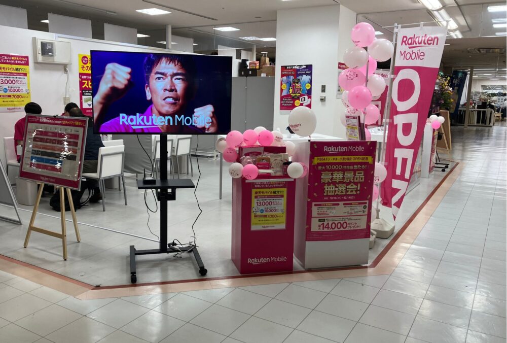 2025年10月16日(木)、木場町の「MEGAドン・キホーテ苫小牧店」2階に「楽天モバイルショップ」がオープンしました。