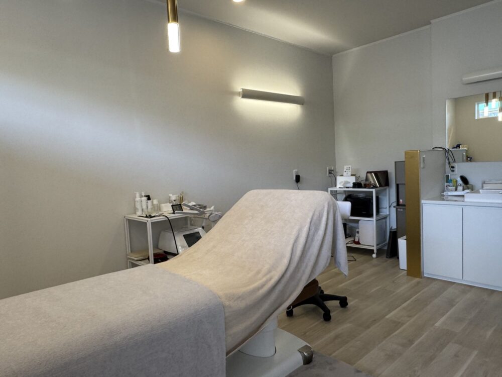 店内の様子です。白を基調とした落ち着いた雰囲気。完全プライベート空間なので、他の方の目を気にすることもありません。