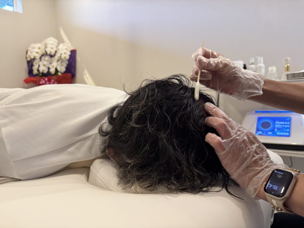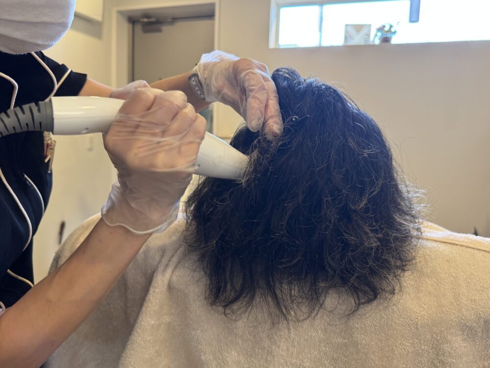 最新機器を使用し「CURAIM(キュライム)」オリジナルのアンプルである、「Rスキンセラム(ガンマ)」を頭皮に浸透させていきます。