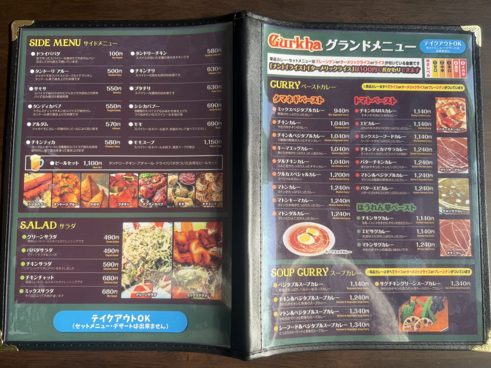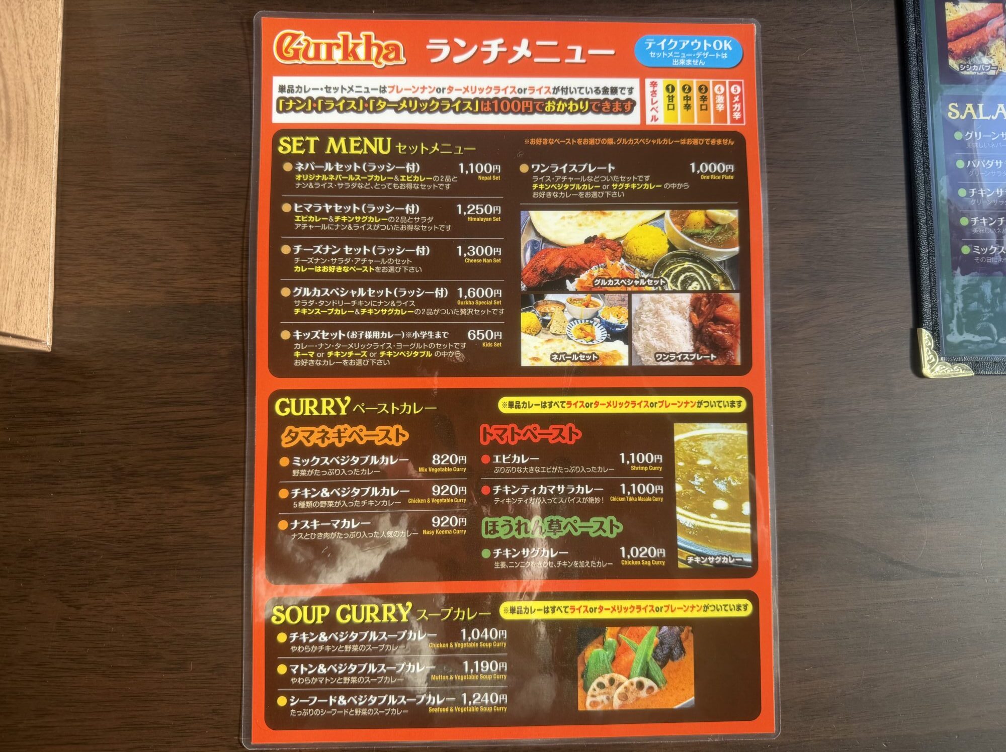 ペーストカレーやスープカレー、またサイドメニューも豊富です。