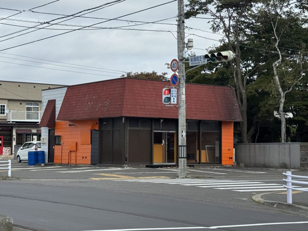 美園町2丁目の交差点角にある建物。現在少しずつオレンジ色の建物に変わっていっています。