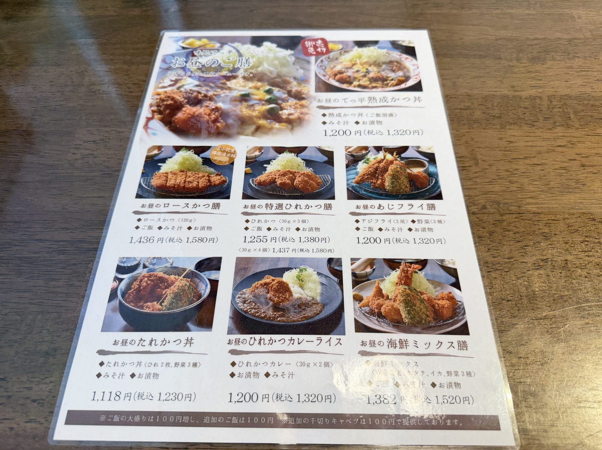 定番のロースかつやひれかつもいいですが、カツ丼も外したくないしカレーも気になるな。。。