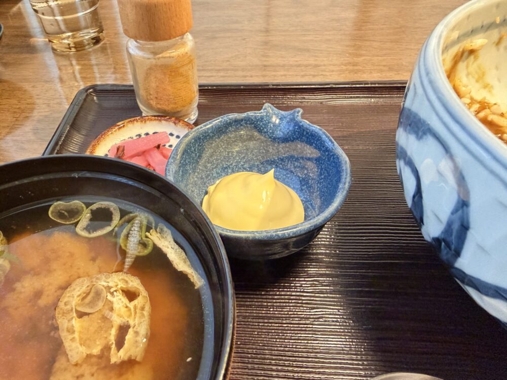 お店の方のオススメで、途中でマヨネーズを加えて味変してみると、なんとも不思議!「お好み焼き」の風味に変わりました!少し辛いなと思っていたカレーもこれで再び食べ進められました♪