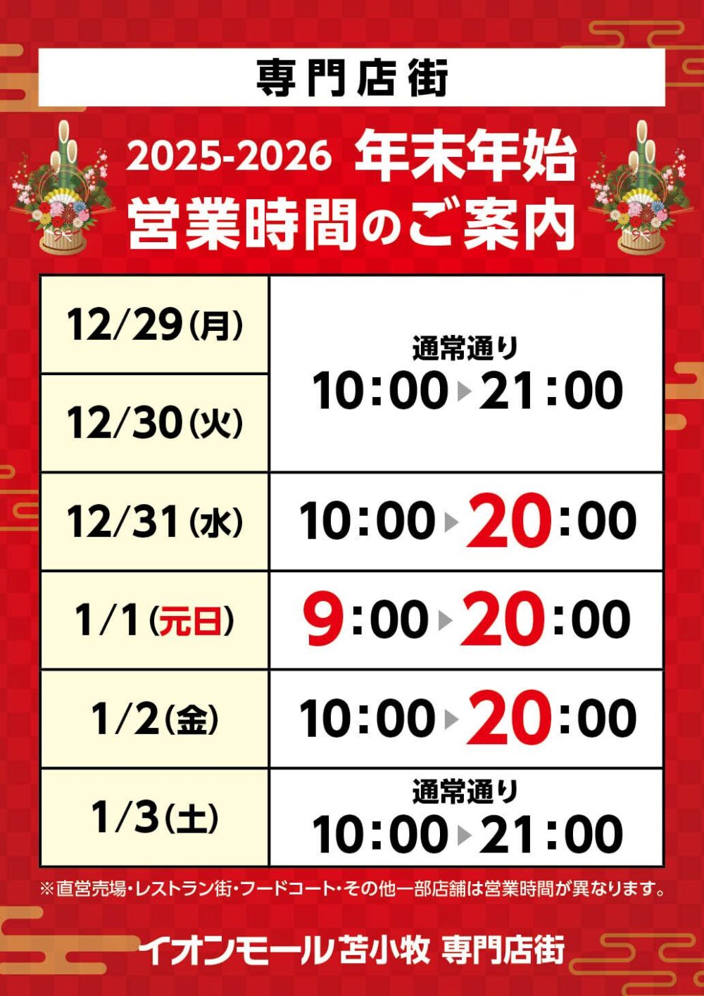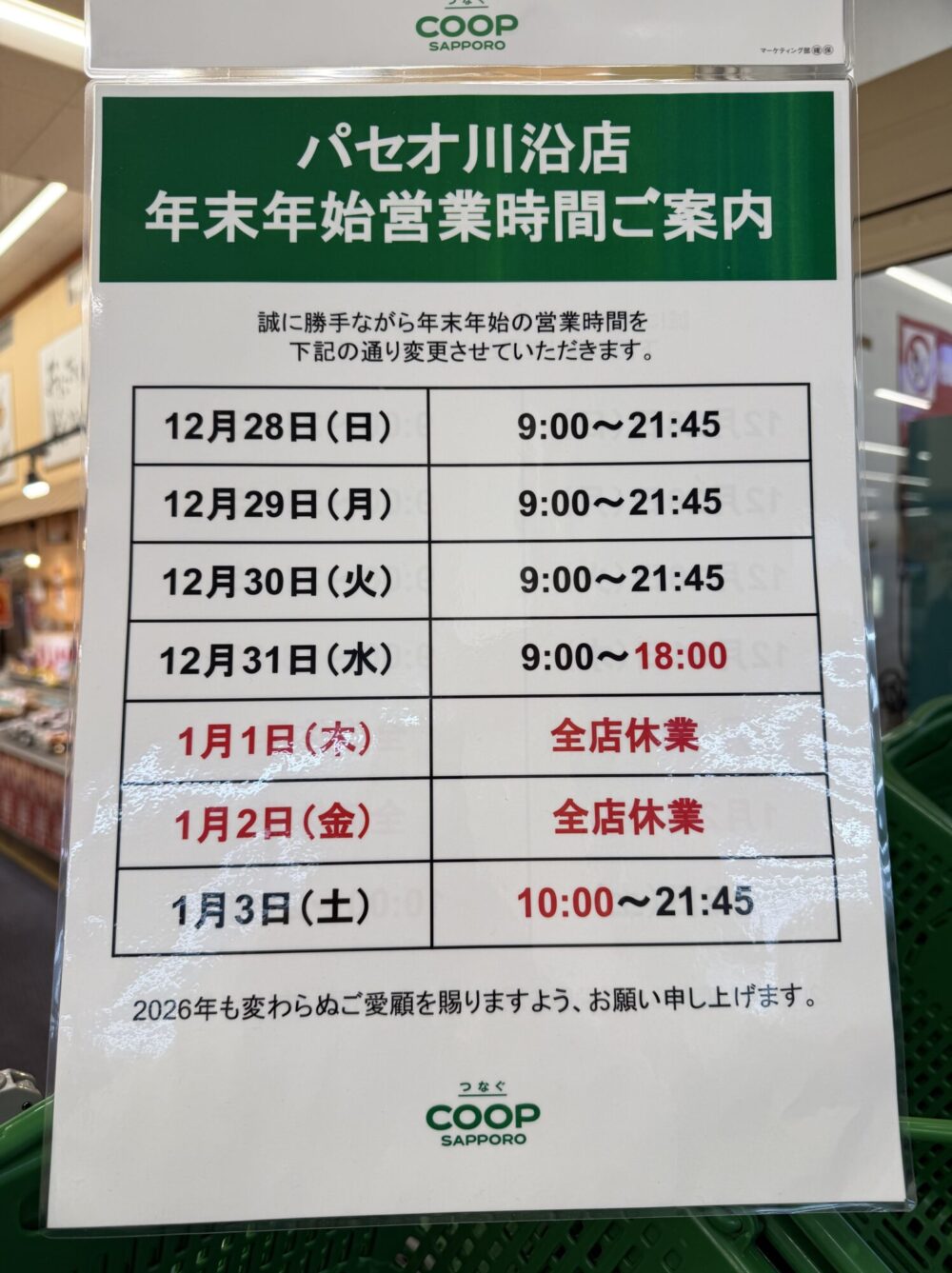 苫小牧市内の主な商業施設やスーパーなどの年末年始の営業日を確認できた範囲でお知らせします。