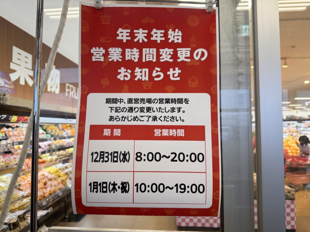 12月31日(水)は特別営業となり全店閉店時間が通常営業と異なります。