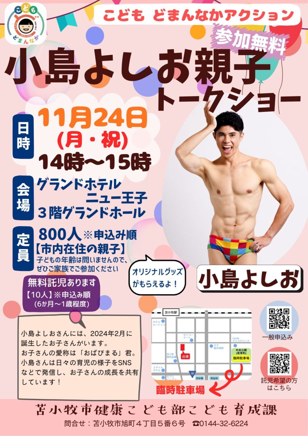 2024年にお子さんが生まれている小島よしおさん。子育ての楽しさや大切さを改めて感じられる機会になるかもしれません。普段なかなか聞けない芸能人の方の子育てトークを間近で聞けるチャンス。どうぞお見逃しなく!