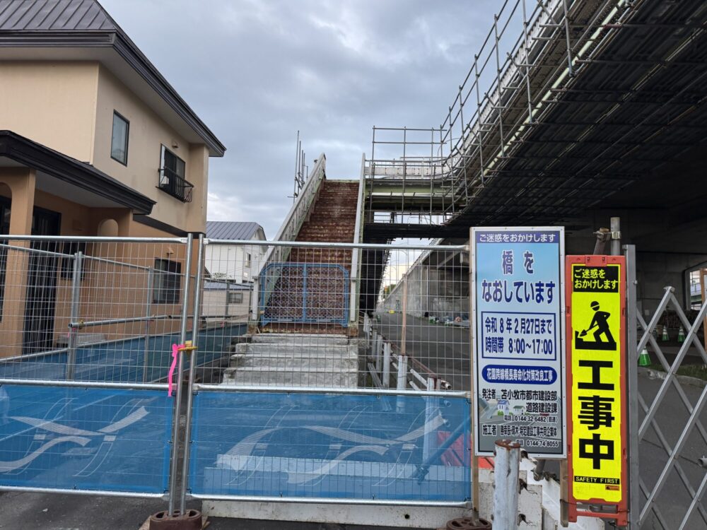 また、苫小牧市のホームページに同じくお知らせのある花園跨線橋に関しては、現在もまだ工事中です。
