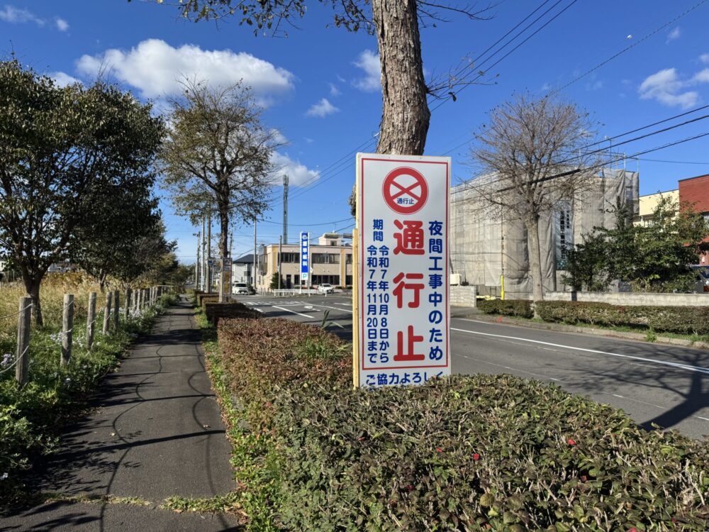 2025年10月8日(水)から、桜木町2丁目と3丁目の間にある「桜木中央通線」が夜間通行止めとなるそうです。