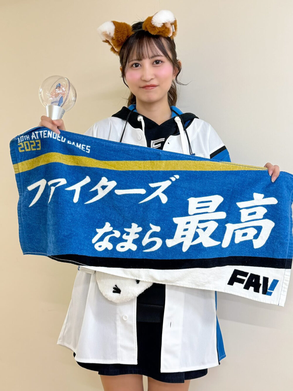 金澤さんは、以前から大のファイターズファンで、東京にいながらもエスコンフィールドでのファイターズ戦を観戦したり、東京でのビジターゲームや現在2軍の本拠地がある千葉県鎌ヶ谷市にも応援に駆けつけるほどの熱烈応援をされています。
