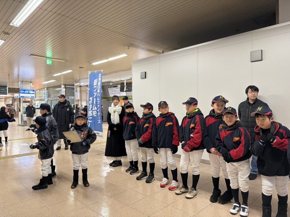 そして、任命翌日にはさっそくJR苫小牧駅コンコースで市内の野球少年団とともに2軍誘致の署名活動にも参加してくださり、
