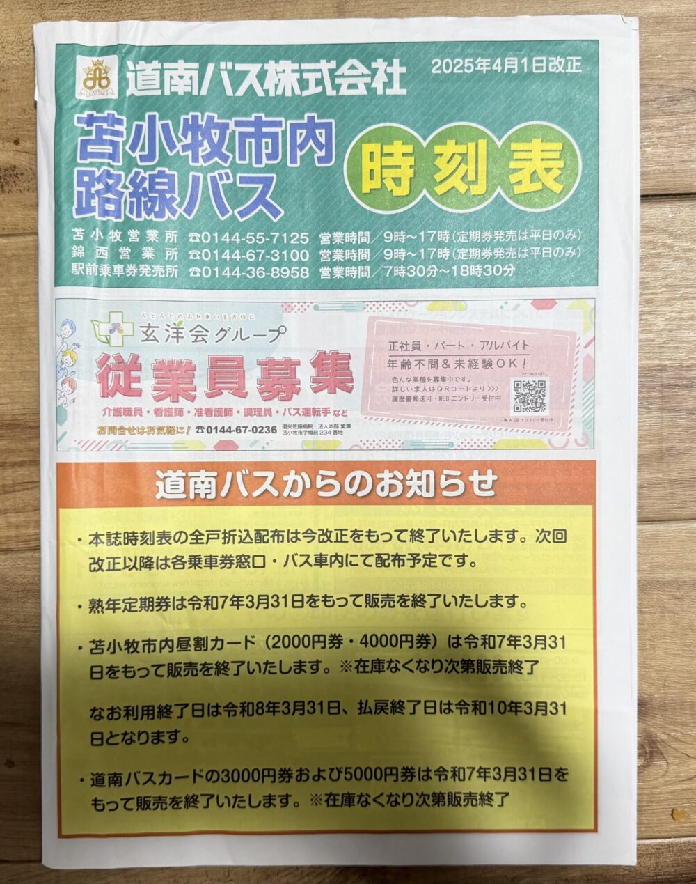 また、昨年のバス時刻表でも案内されていたように、2026年4月からの分については各世帯に配布されていた紙時刻表が廃止されました。